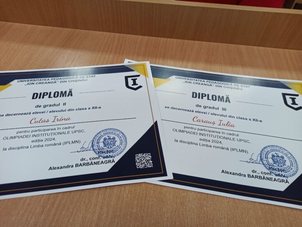 Кутас Ирина и Карауш Юлия, ученицы 12Б класса, заняли 2 и 3 место соответственно на олимпиаде по румынскому языку, организованной UPS Ion Creanga